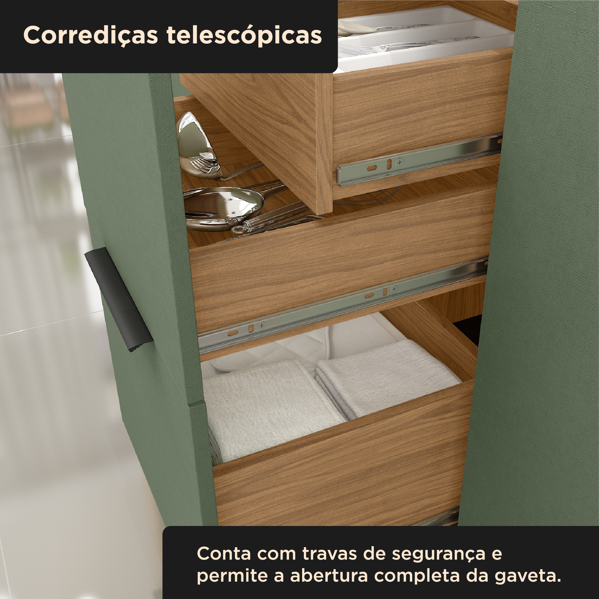 Balcão 120cm 100% MDF Toscana - freijó / jade