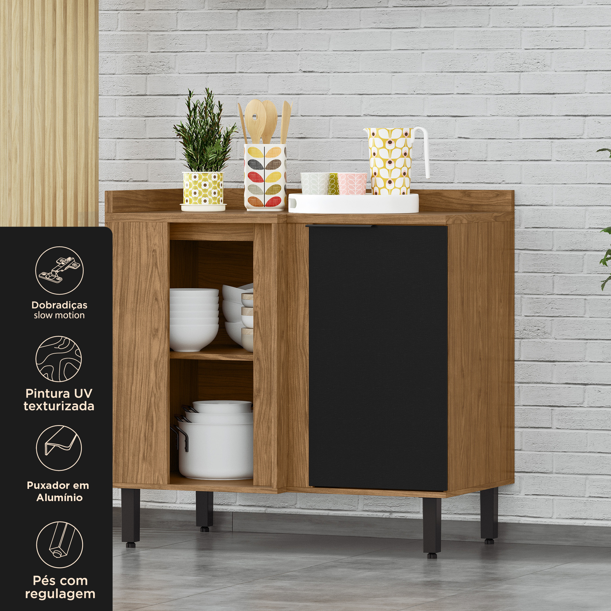 Balcão canto reto 100% MDF Toscana - freijó / nero