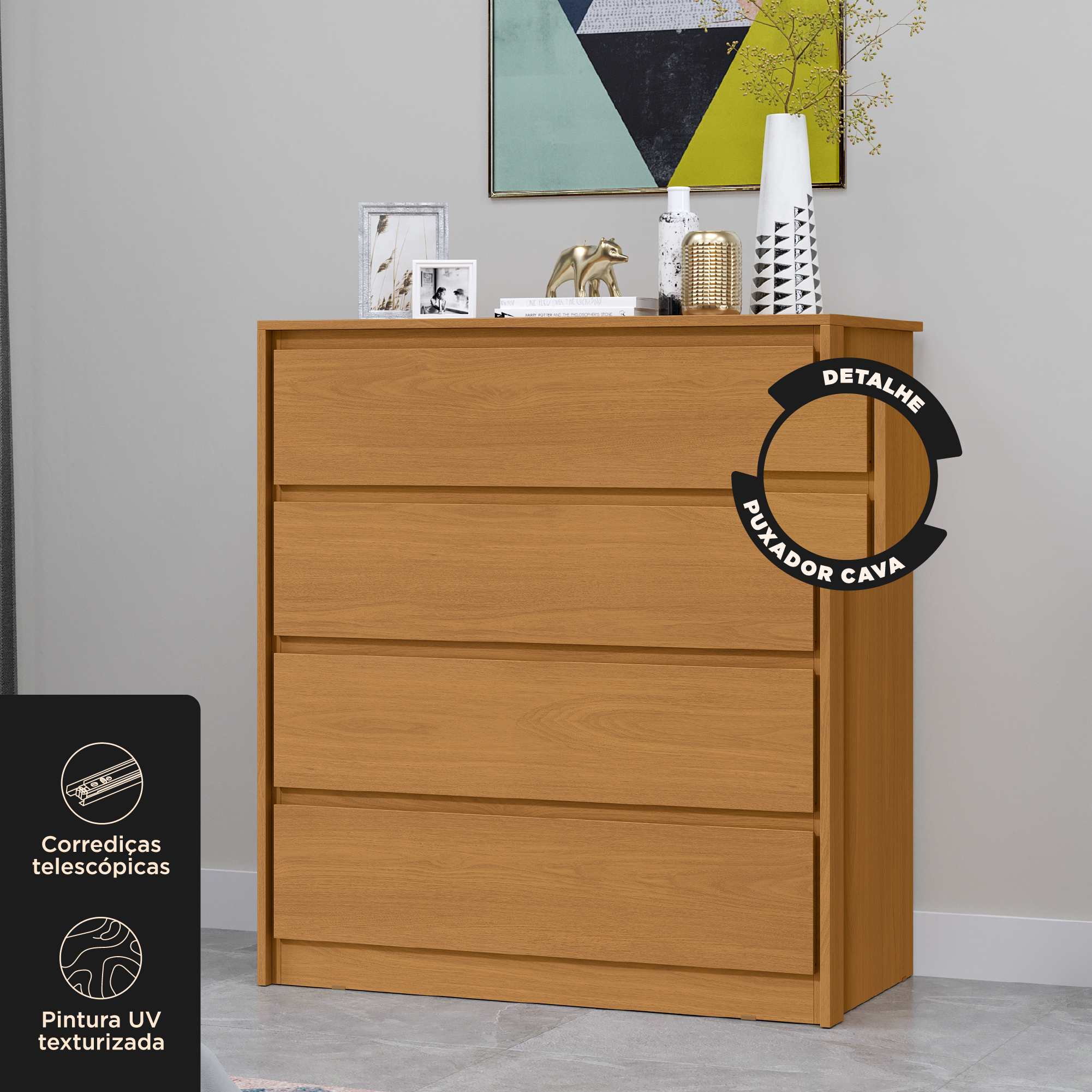 Cômoda 4 gavetas grandes Carla - cinamomo / cinamomo