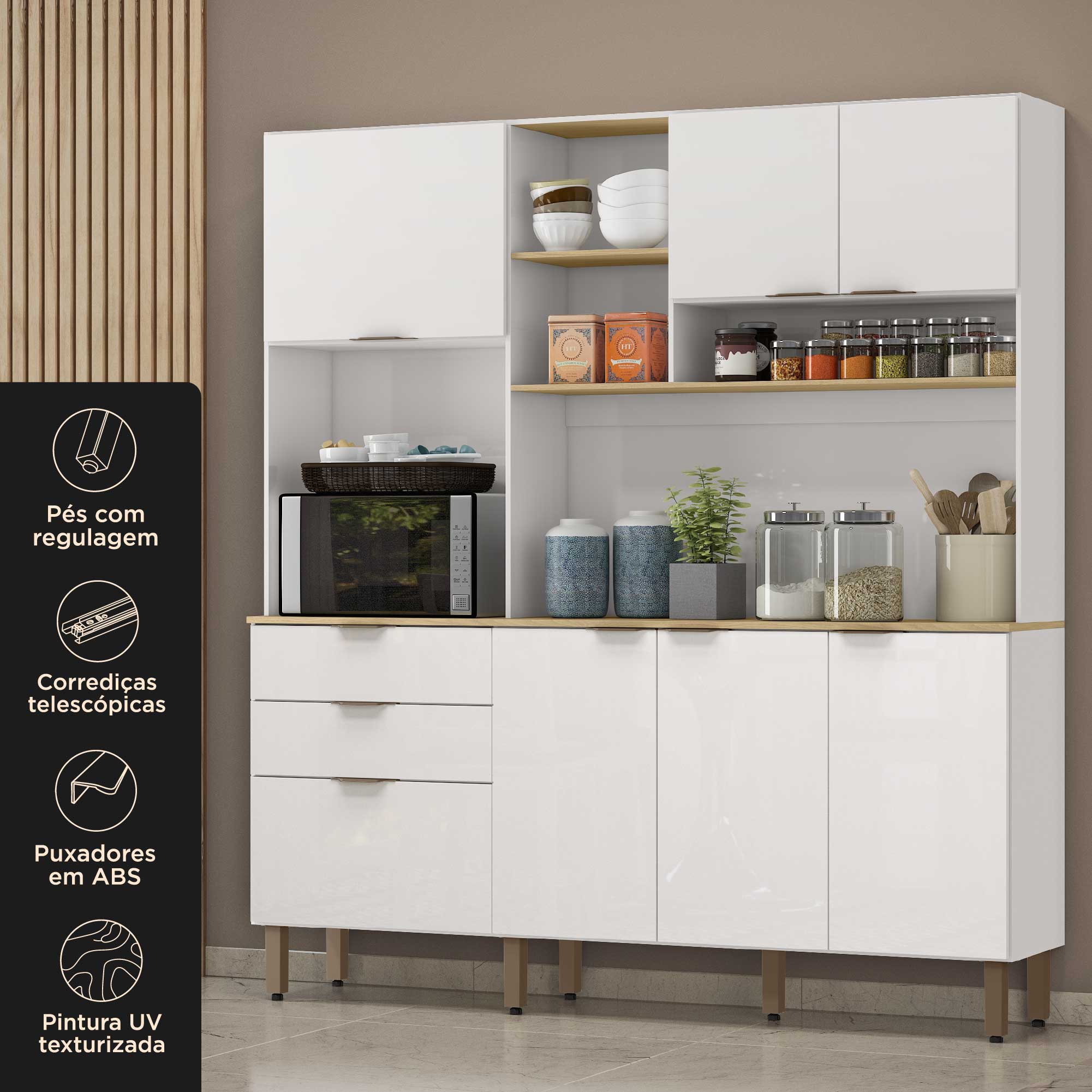 A compacta Boreal é a escolha ideal para quem busca mais organização na cozinha, complementando o ambiente e tornando o espaço mais funcional e acolhedor.