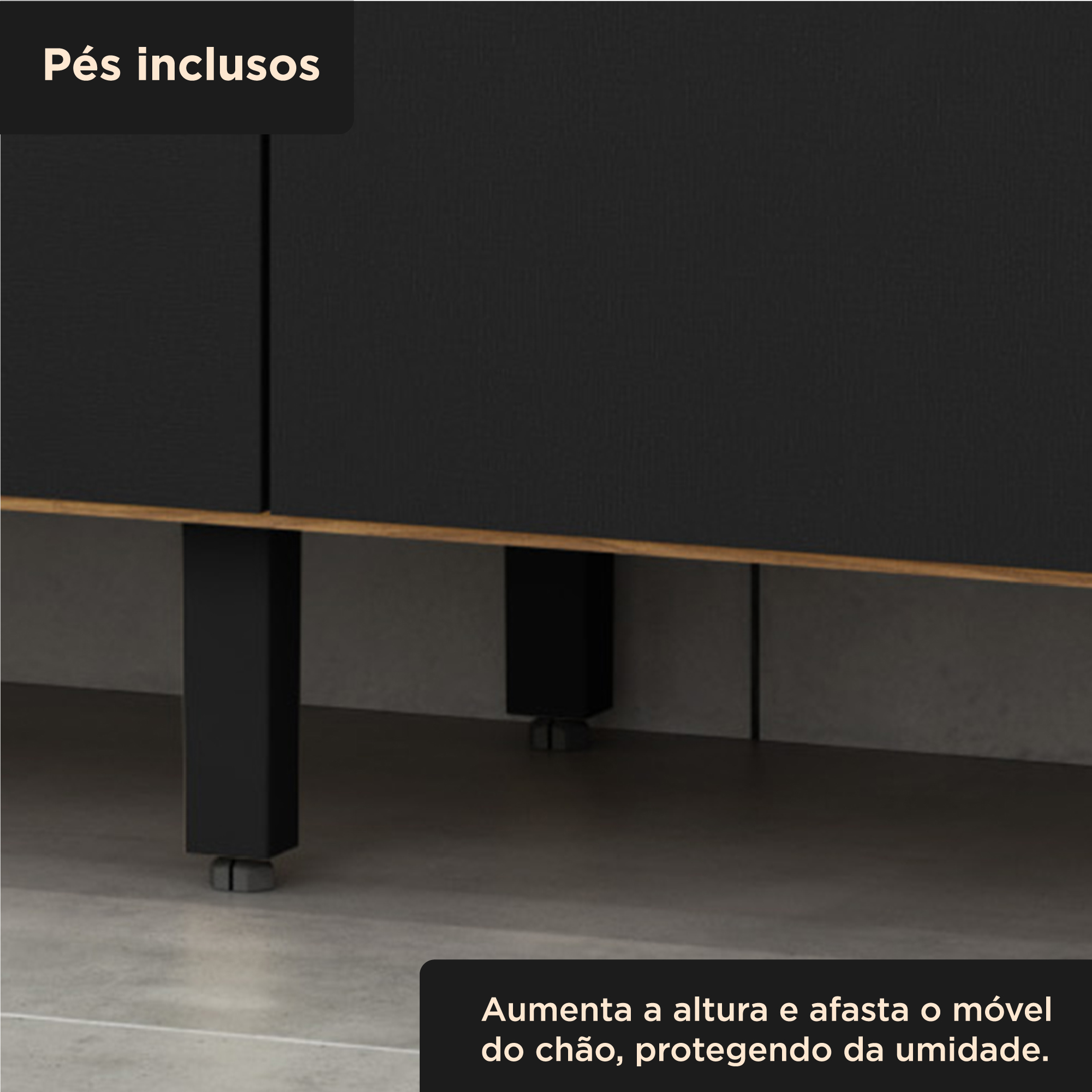 Cozinha compacta grande 6 portas 1 gaveta Zoe - freijó / nero