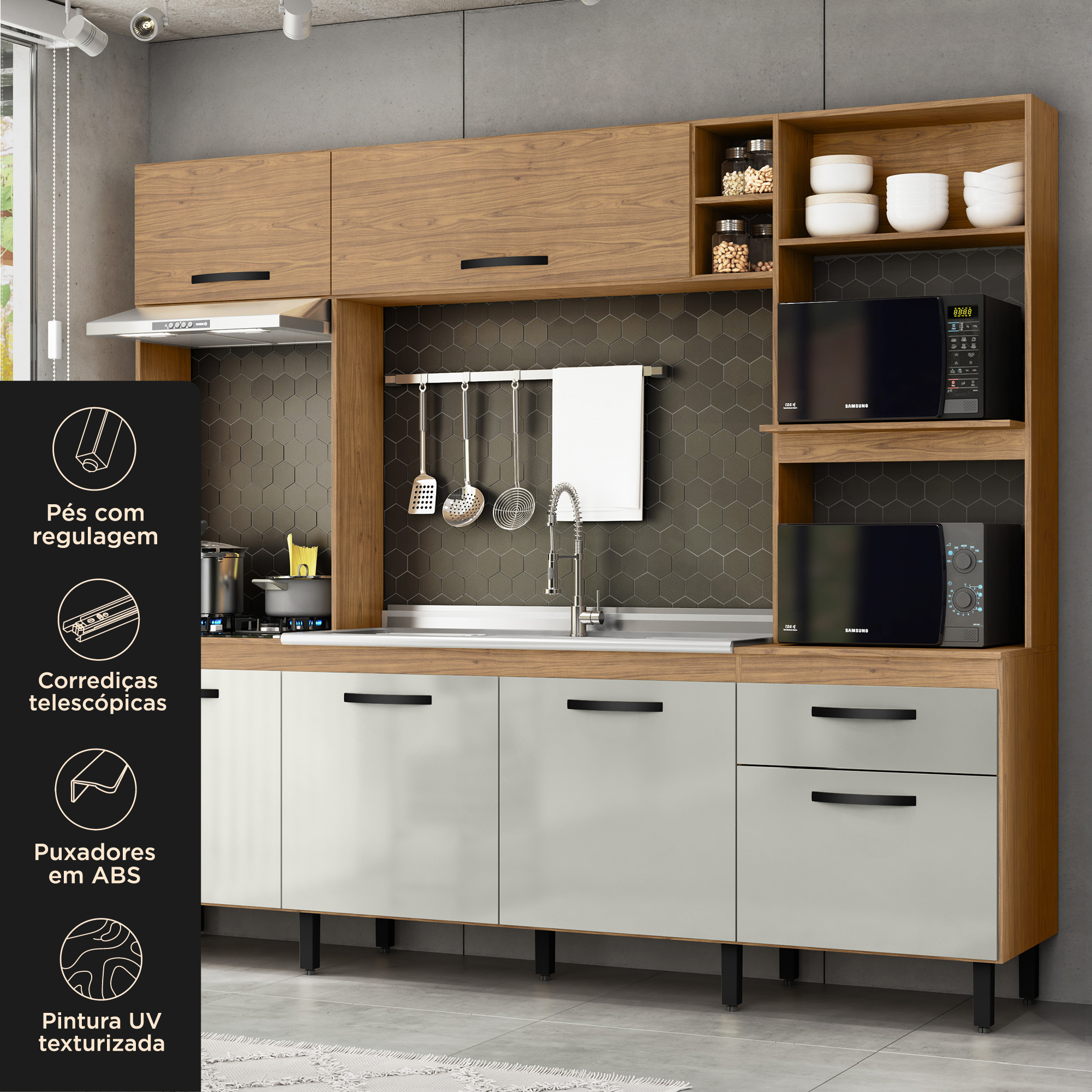 Cozinha compacta grande 6 portas 1 gaveta Zoe - freijó / off-white