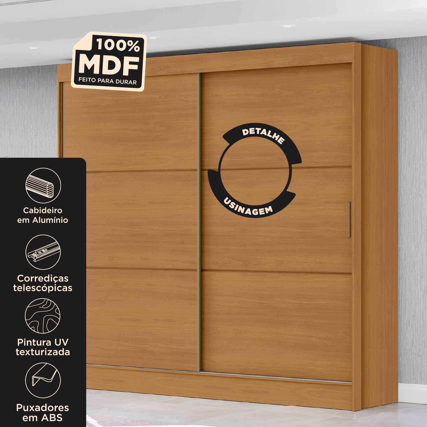 Guarda-roupa casal 2 portas de correr com 3 gavetas Palermo - cinamomo / cinamomo
