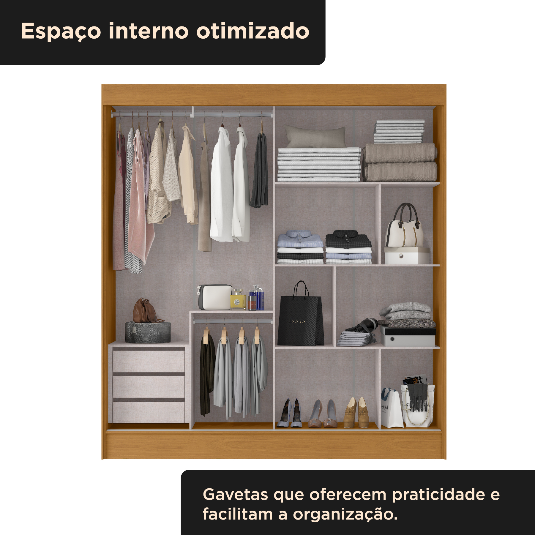 O guarda-roupa Palermo foi desenvolvido para quem busca organização, funcionalidade e aproveitamento inteligente do espaço. Com design contemporâneo e excelente distribuição interna, ele oferece praticidade para o dia a dia e conforto no uso.