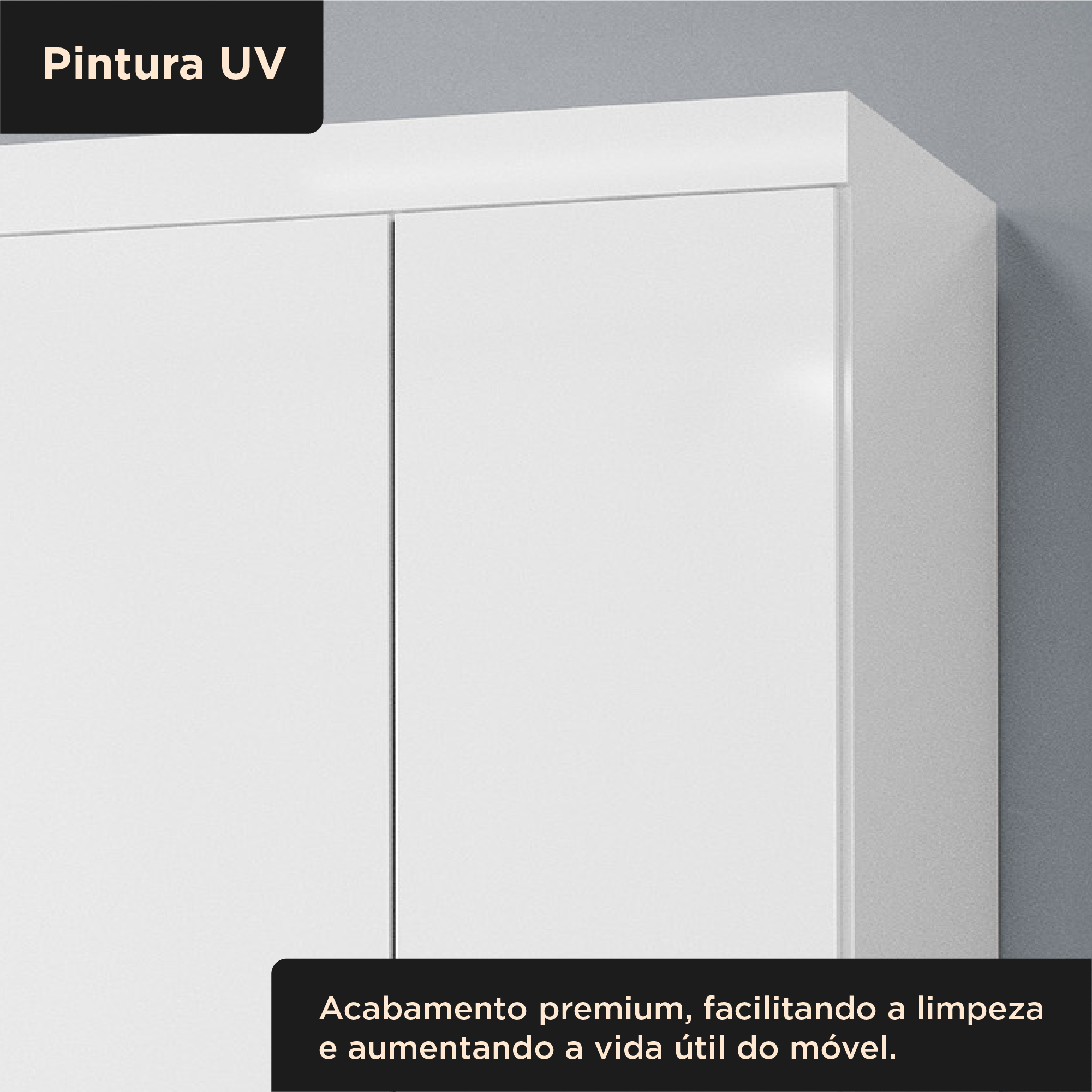 Os puxadores em MDF, a PINTURA UV TEXTURIZADA e os pés que já vêm inclusos no produto deixam-no mais robusto e cheio de personalidade.