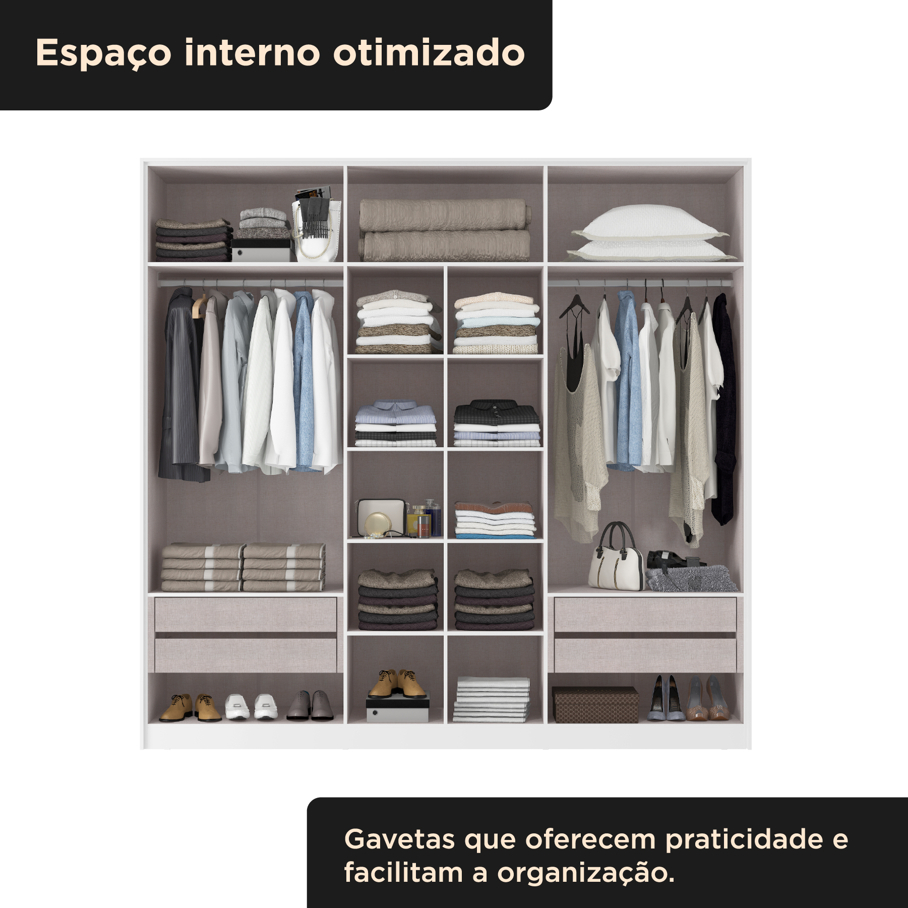 Guarda-roupa casal 6 portas 4 gavetas Barcelona - branco fosco / branco fosco