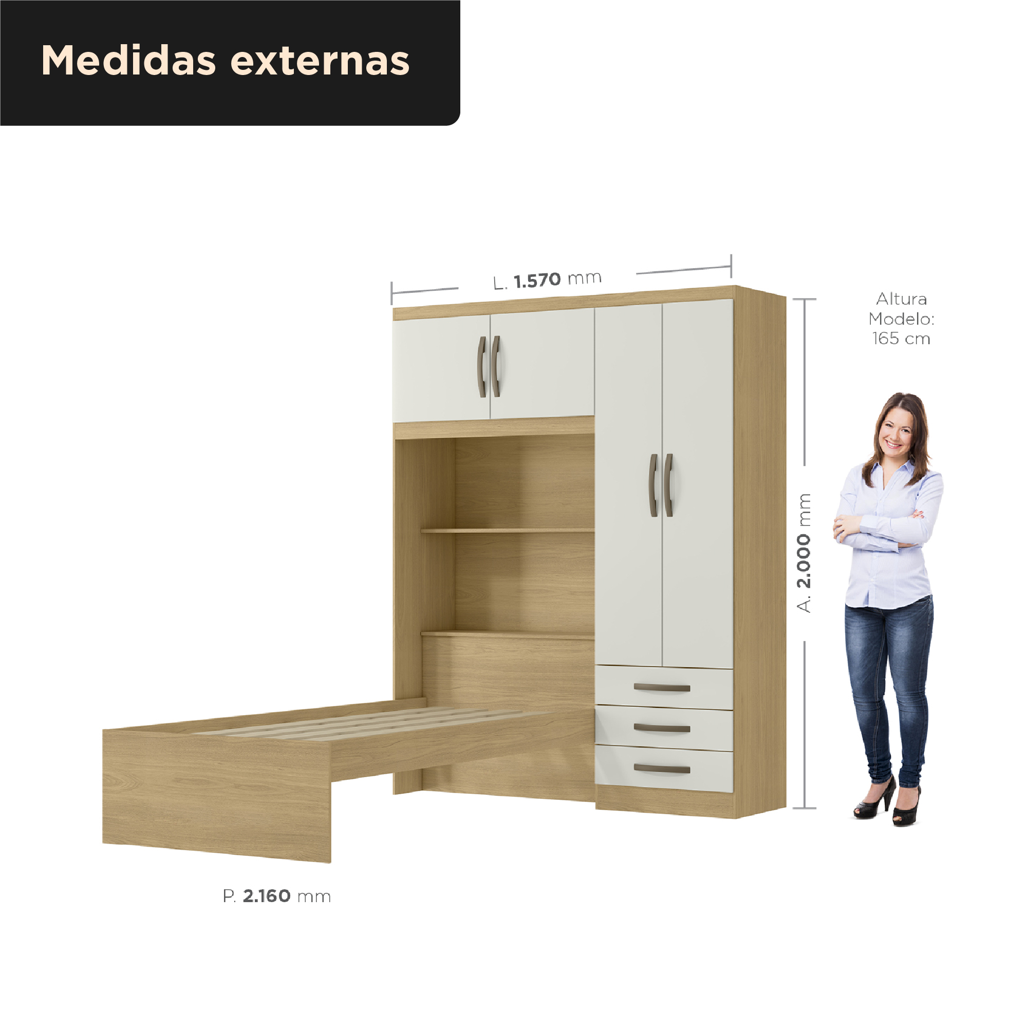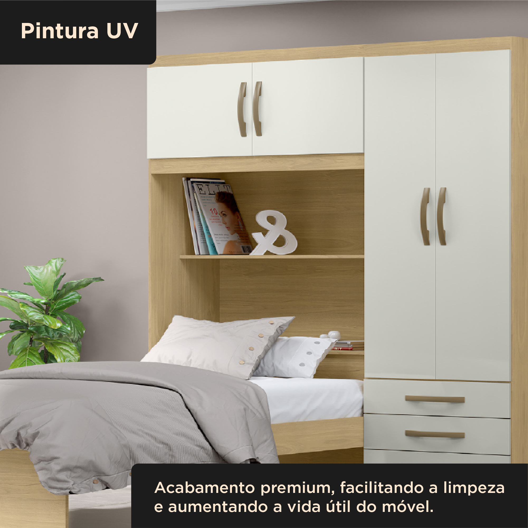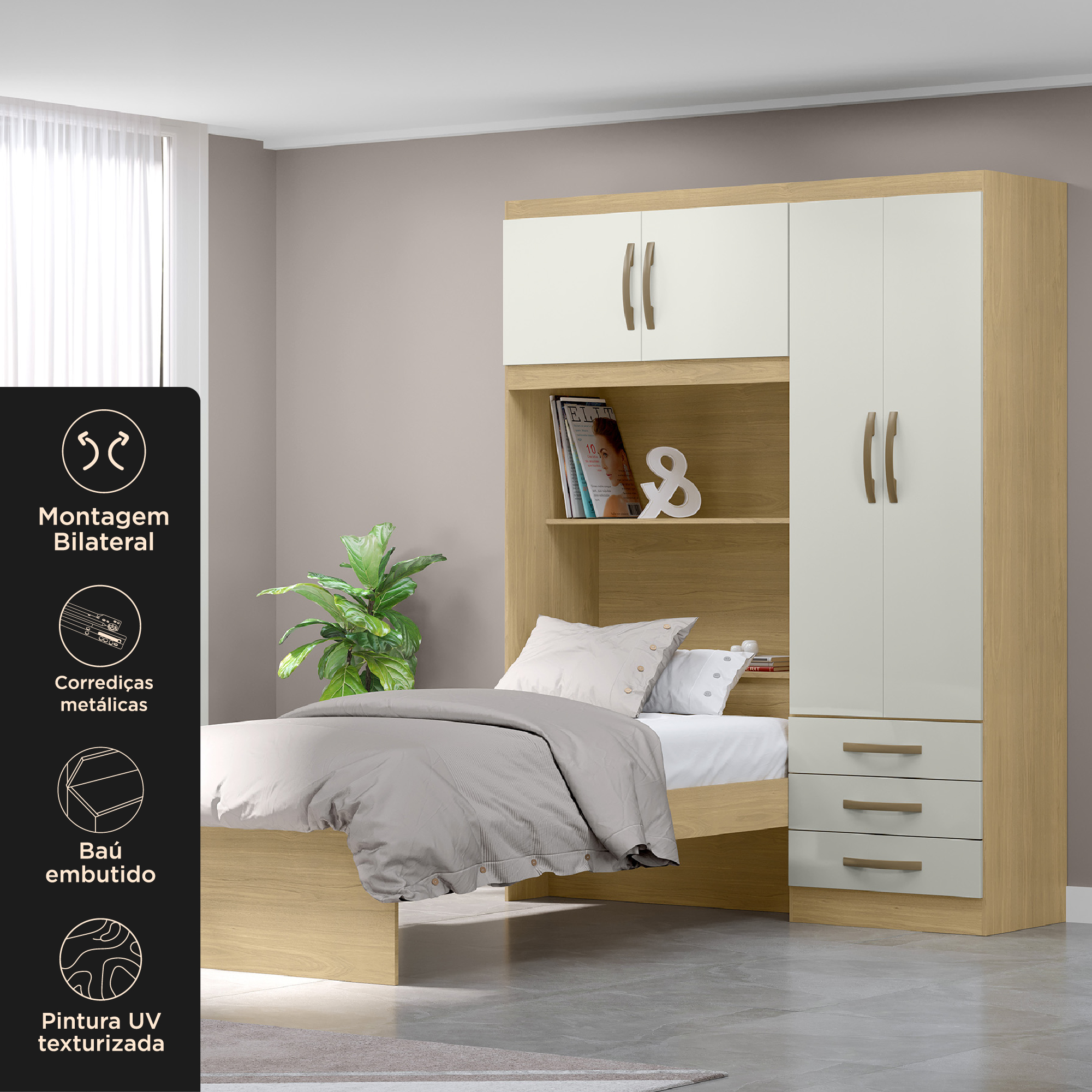 O guarda-roupa Lisboa é a melhor opção para quem está à procura de um produto funcional e que dispensa complementos. Além de reunir cama e guarda-roupa em um único produto, ele traz um detalhe especial: o baú embutido na cabeceira, ideal para manter seu quarto ainda mais organizado e funcional.