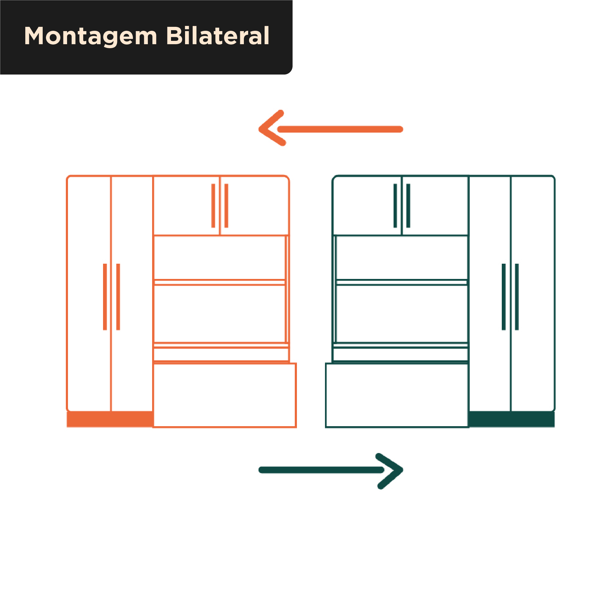 Pensando em se adequar ao seu espaço, o guarda-roupa Lisboa possui duas formas de montagem, permitindo que você escolha qual das opções se encaixa melhor na organização do seu quarto.