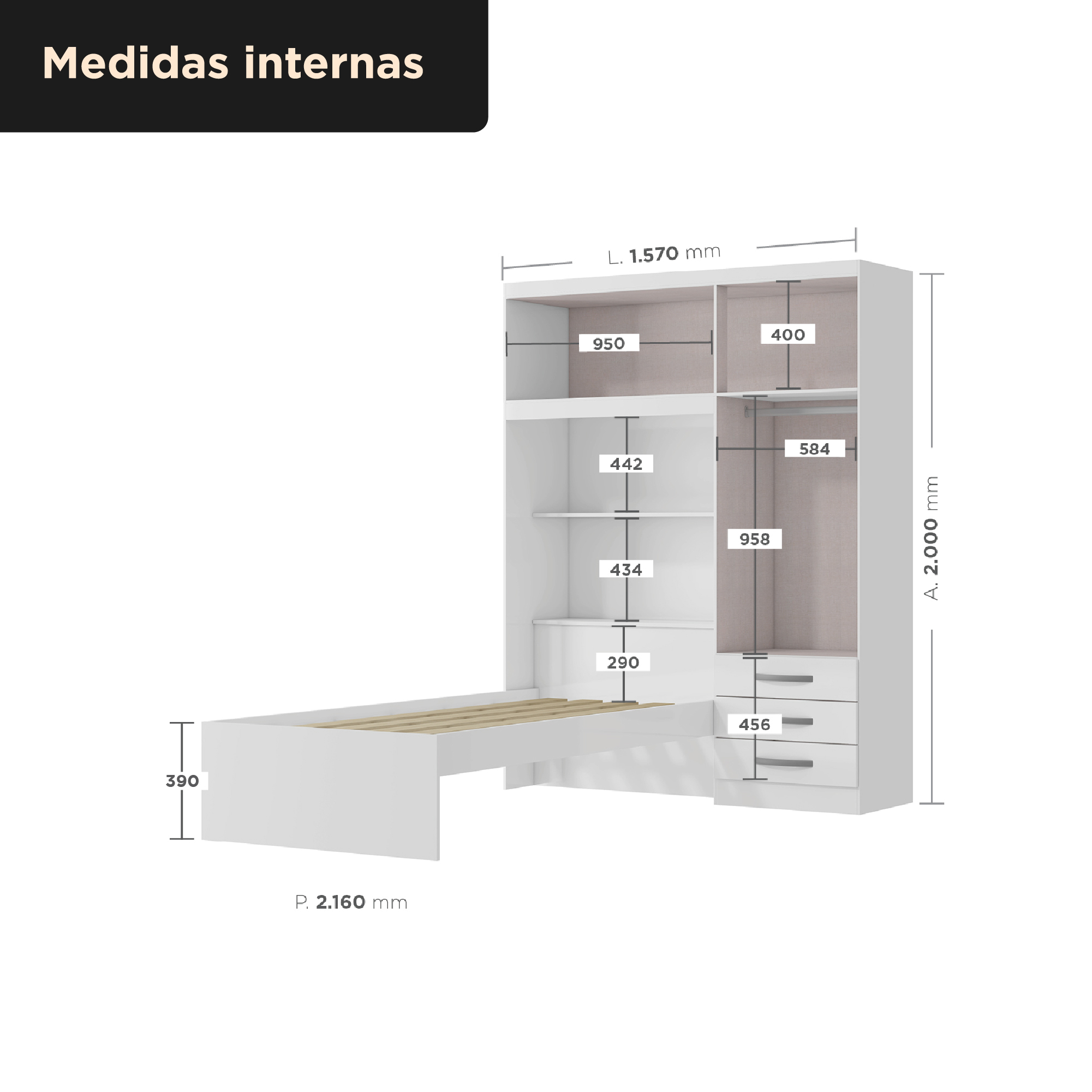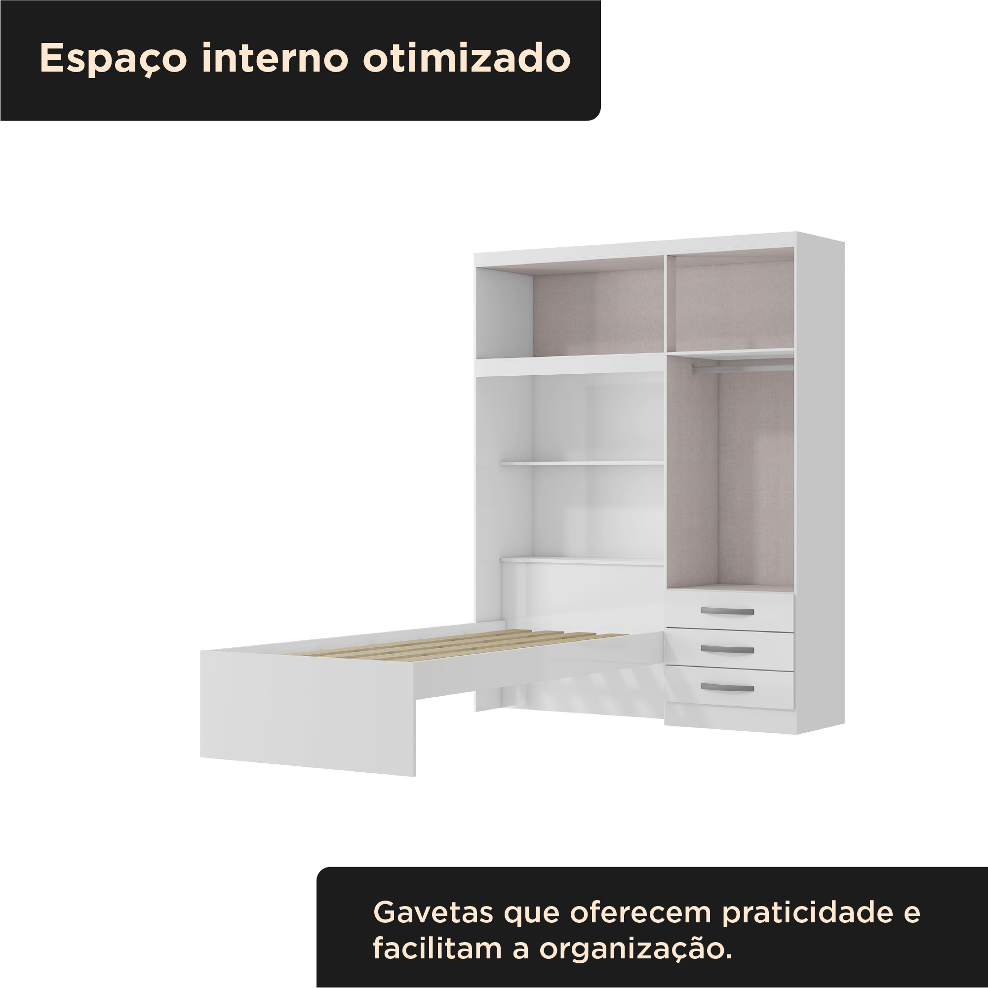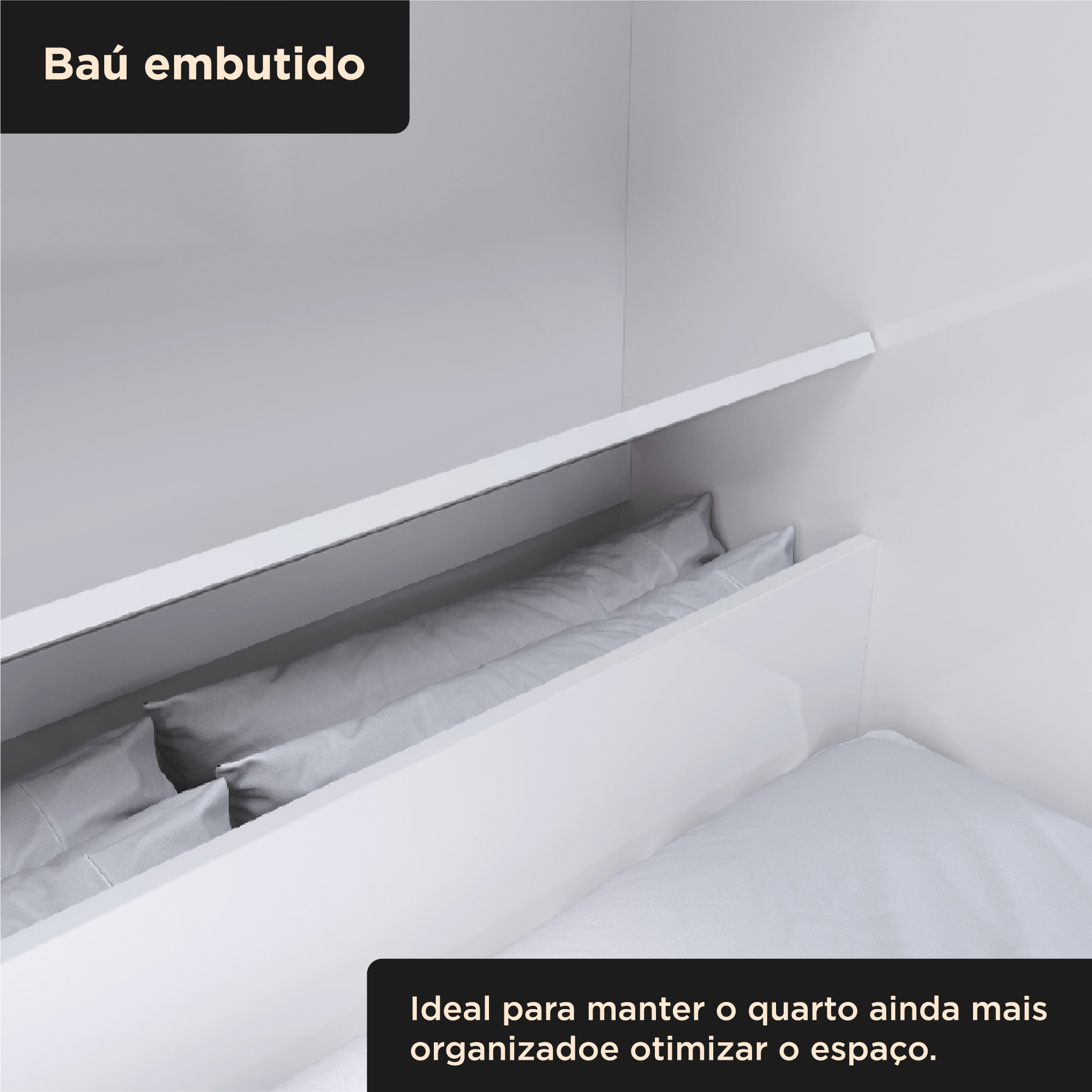 O guarda-roupa Lisboa é a melhor opção para quem está à procura de um produto funcional e que dispensa complementos. Além de reunir cama e guarda-roupa em um único produto, ele traz um detalhe especial: o baú embutido na cabeceira, ideal para manter seu quarto ainda mais organizado e funcional.