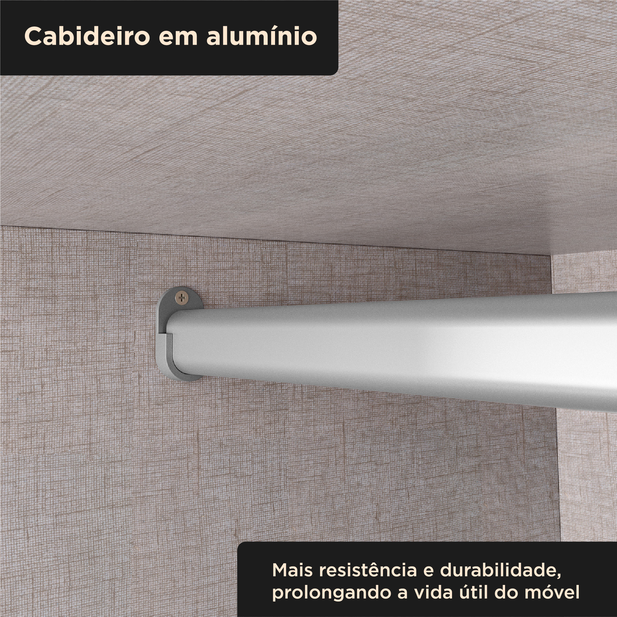 O destaque deste produto está nos puxadores Cava embutidos, usinados diretamente nas peças, e nas portas, sendo uma de correr e duas de bater, deixando o design clean e moderno, trazendo personalidade para o seu quarto.