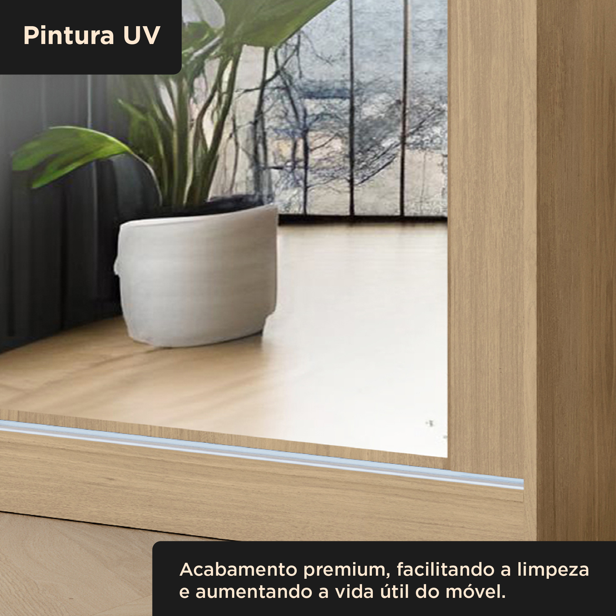 Fabricado 100% em MDF, este produto é feito para durar e se torna ainda mais resistente devido ao seu acabamento em PINTURA UV TEXTURIZADA, que protege as peças da umidade e adiciona mais estilo ao seu ambiente.