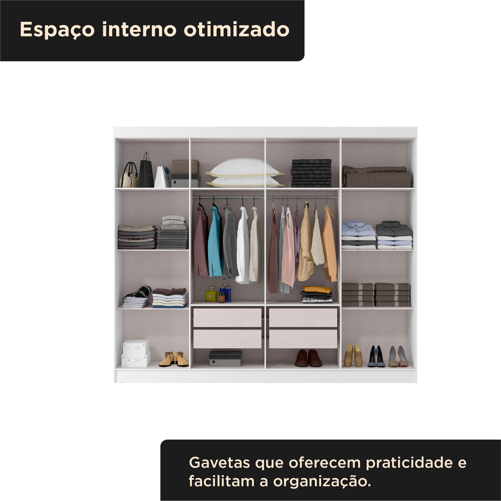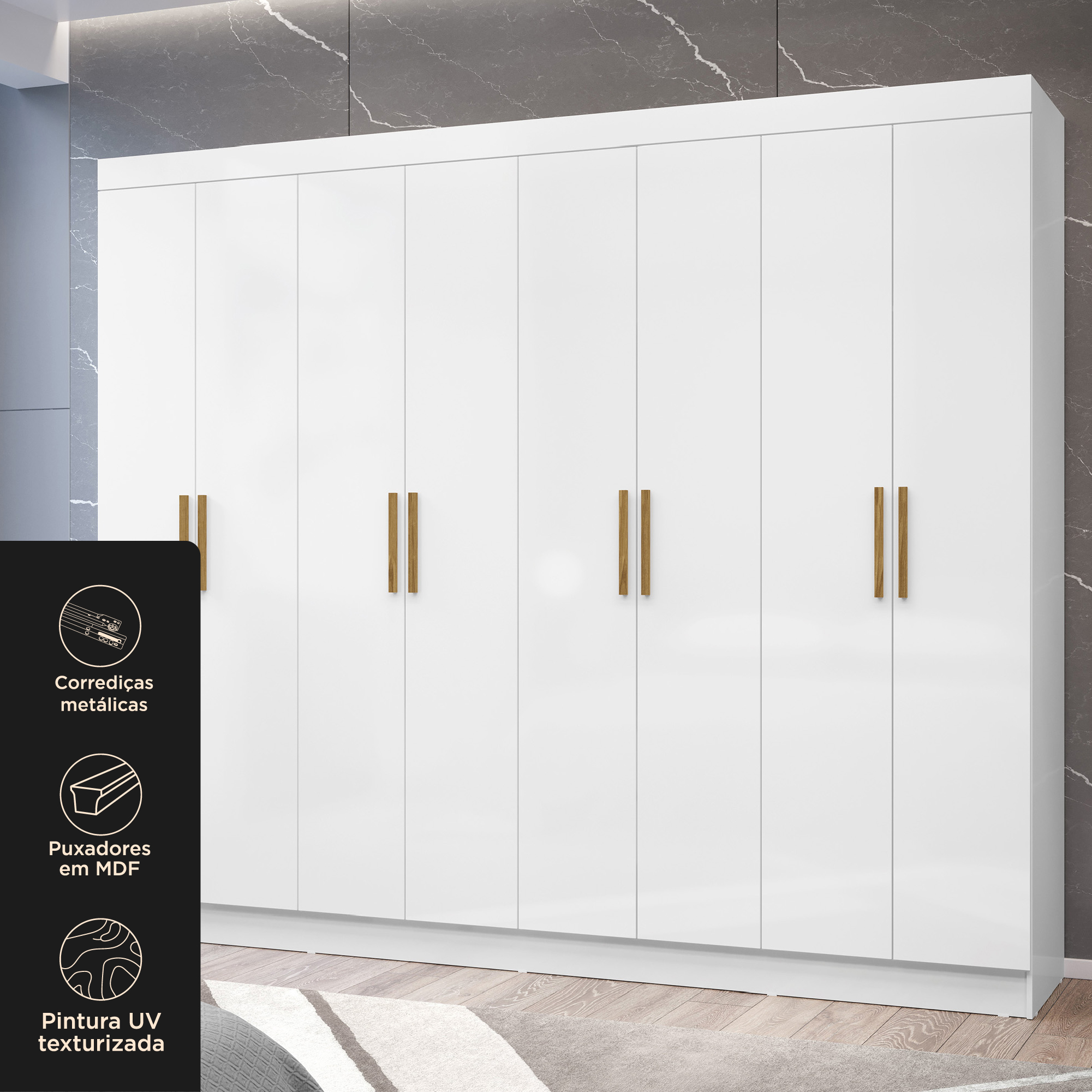 Guarda-roupa grande casal 8 portas 4 gavetas Tauri - branco neve / branco neve