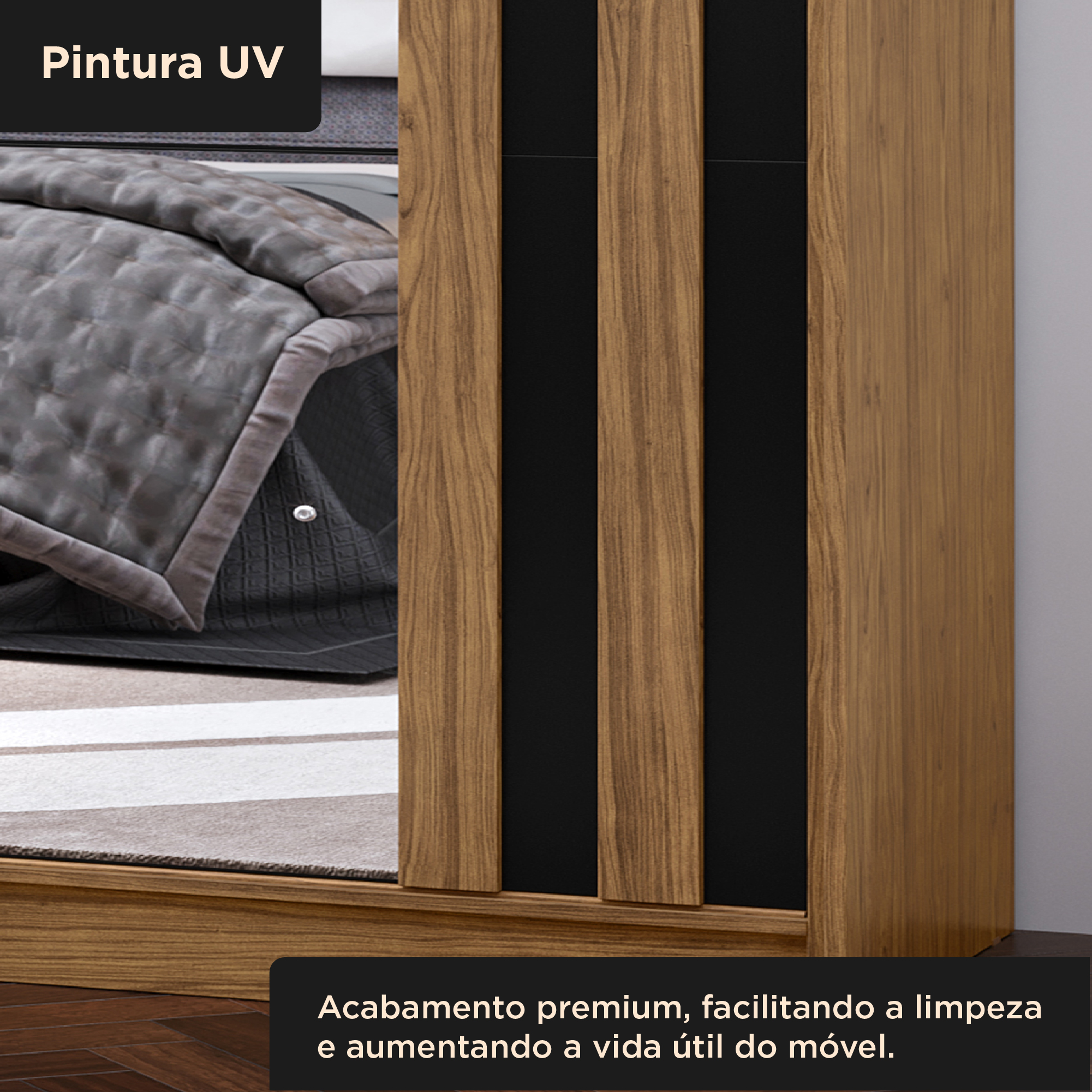 Guarda-roupa grande para casal 100% MDF 2 portas de correr 4 gavetas Seul - com espelho - freijó / nero