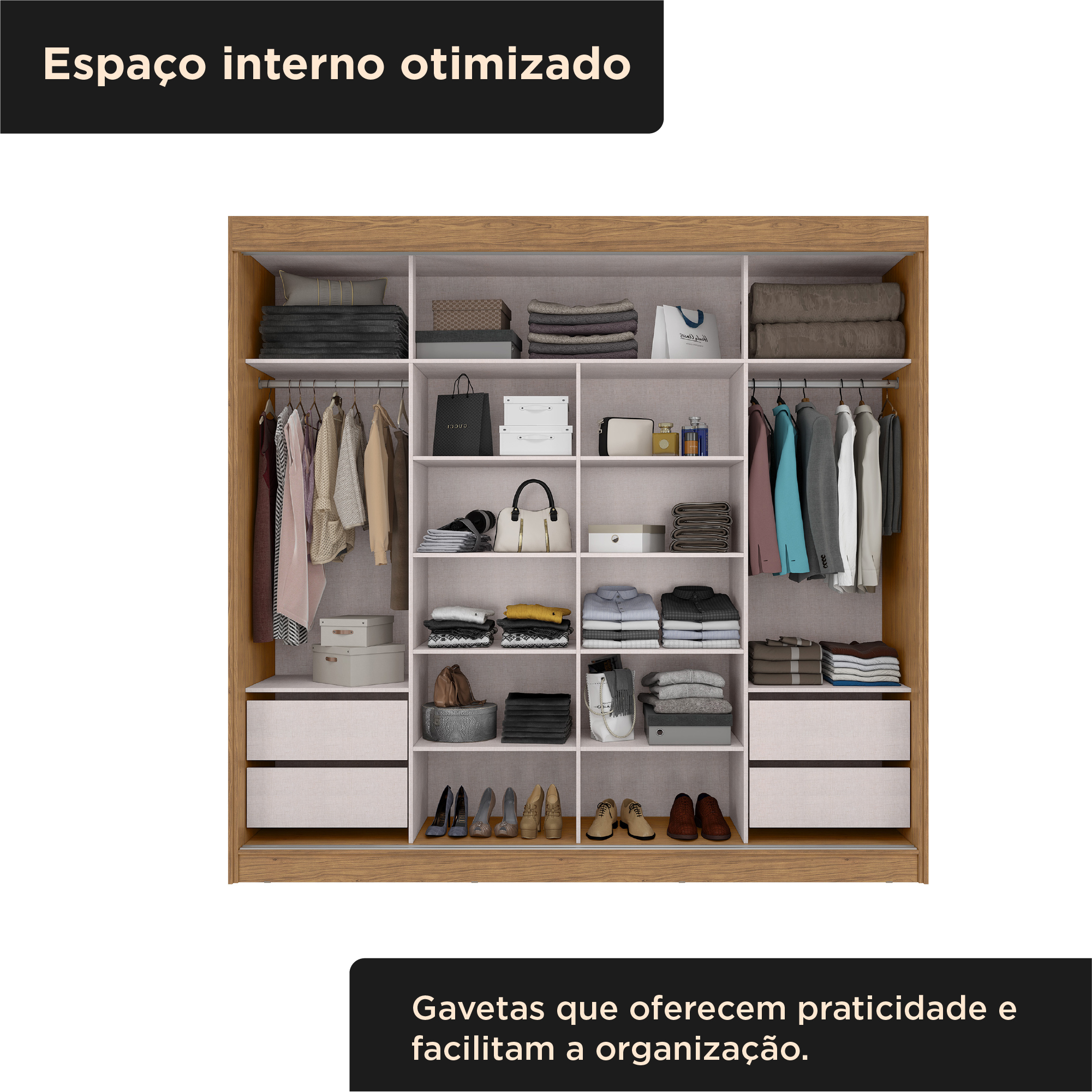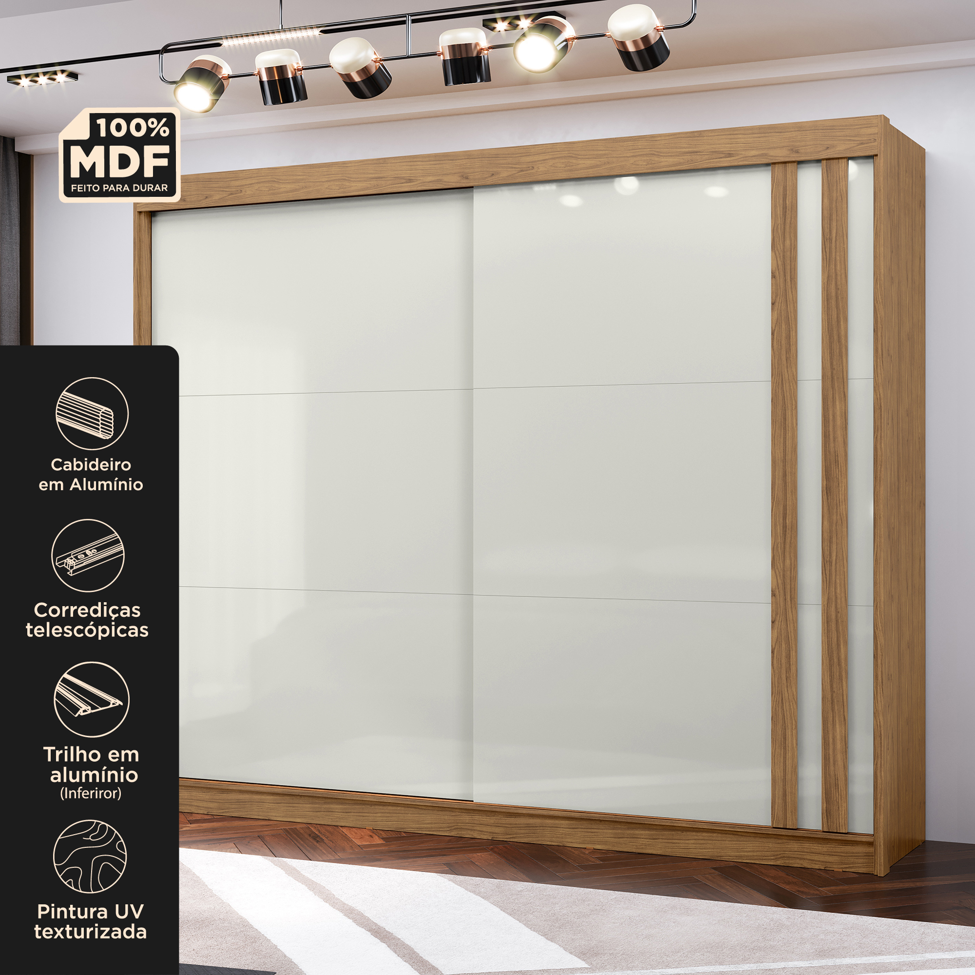 Guarda-roupa grande para casal 100% MDF 2 portas de correr 4 gavetas Seul - freijó / off-white