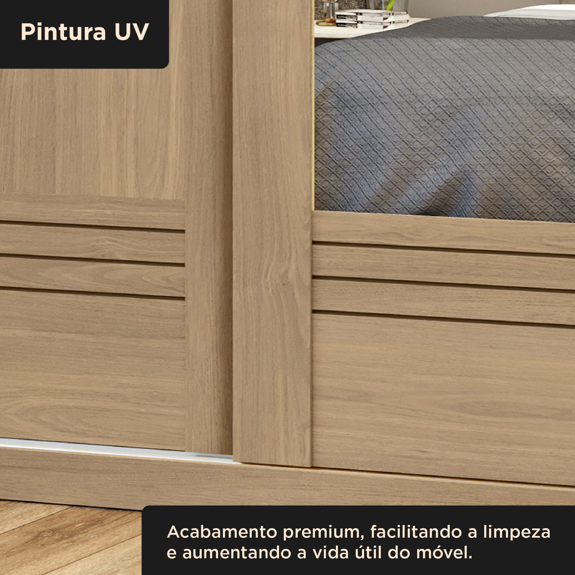 Este produto possui acabamento em pintura UV texturizada, garantindo maior durabilidade. Suas portas contam com detalhes usinados, agregando ainda mais personalidade ao seu quarto.