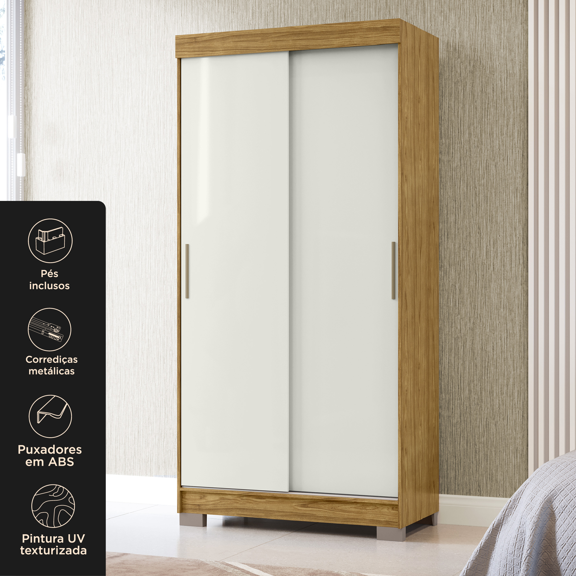 Guarda-roupa solteiro 2 portas de correr 2 gavetas Antares - marrocos / off-white