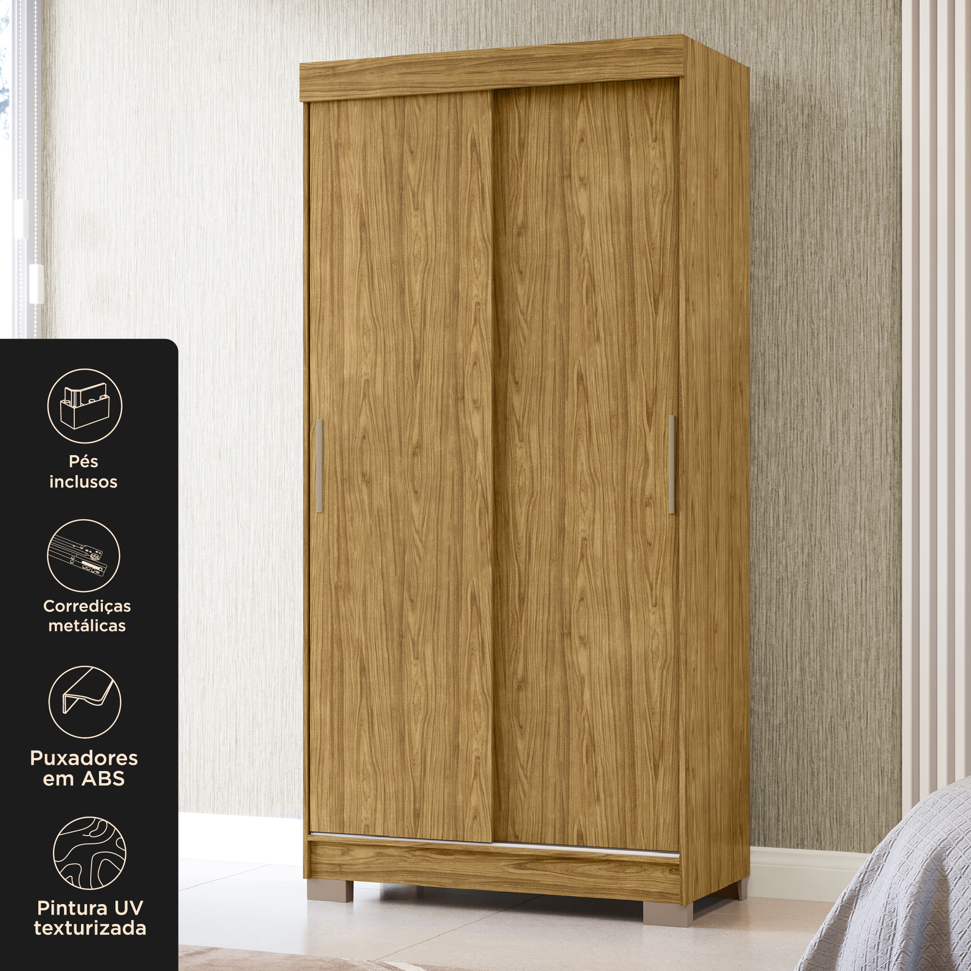 Apesar da sua largura reduzida, os 1,90 metros de altura permitem a acomodação de todos os seus itens. São 2 gavetas espaçosas e diversas prateleiras para você se organizar como preferir. Além disso, este produto conta com um cabideiro para pendurar todo tipo de roupa.