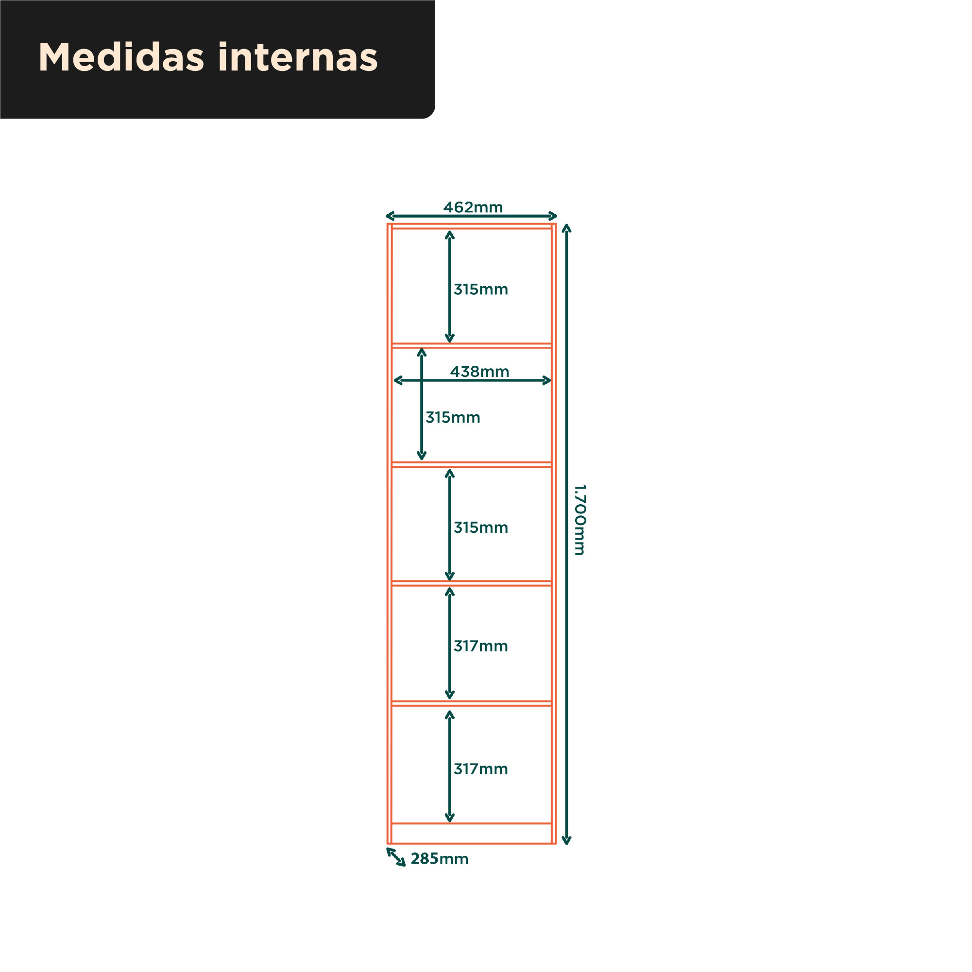 Com 5 prateleiras, seu espaço interno é otimizado ao máximo, para que o móvel seja funcional e facilite o uso diário.