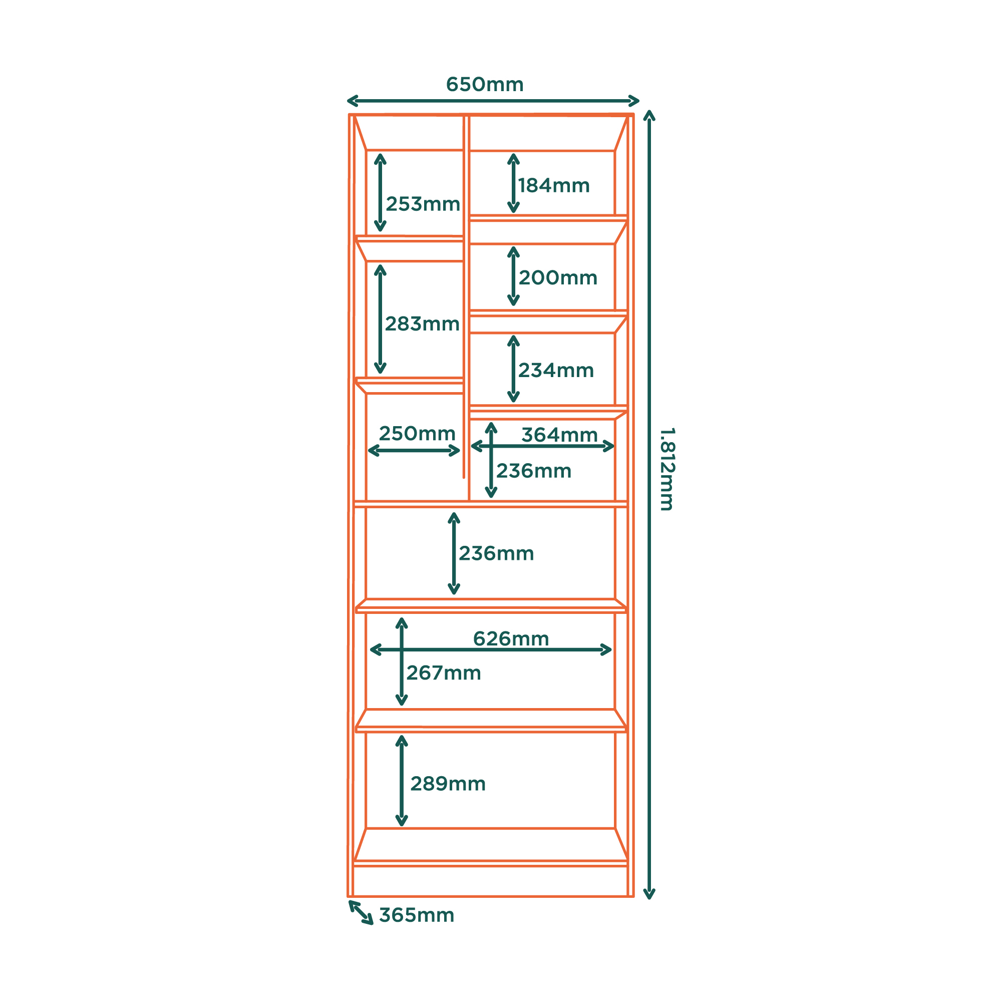 Os nichos expostos possibilitam a decoração do ambiente, e as 7 prateleiras internas garantem a otimização do espaço interno, facilitando a organização e tornando seu ambiente ainda mais funcional.